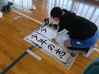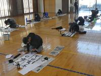 昨日に続いて6年生は明日が校外学習なので、今日が校内書き初め大会でした。1時間目に6年3組、2時間目に6年2組、3時間目に6年1組がそれぞれ体育館で書き初めを行いました。『少年の志』文字の中心に気をつけて真剣に書いていました。