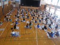 今日は4年生が校内書き初め大会です。3・4時間目に体育館にて学年全体で行いました。