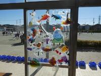 4時間目に1年生の生活科で作ったたこを校庭で上げているクラスがありました。