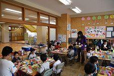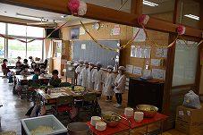 会が終わった後は,教室で一緒に給食を食べました。