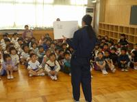 初めに紙芝居で登校や下校の時の約束をまもるお話をしてくださいました。