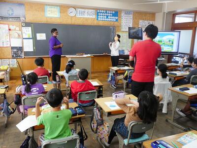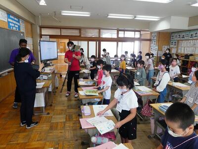 ALTのメルシーと学級担任との外国語活動の授業の様子を参観していただきました。