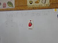 好きなものを訪ねる活動を行いました。「食べ物」「色」「スポーツ」について、友だちが何が好きなのを予想して、ワークシートに記入しました。