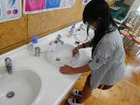 「みずきっ子の新しい生活様式」に沿って、教材を友だちと共有する場面があったことから、授業中でも手洗いする様子に驚かれていました。