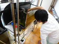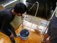 飼育栽培委員会は水槽の水を交換していました。ポンプを使い、手際よく水を抜いていきます。