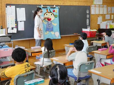 歯科衛生士さんに来ていただいて、「お口の中を知ろう!」をテーマにいろいろなお話をいただきました。