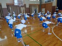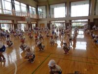あいにくの雨で、運動会練習は体育館です。