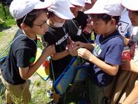 つかまえていただいたヤゴを2年生が体験していました。
