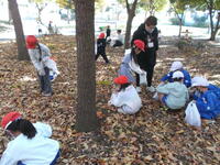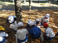 秋晴れのもと、子どもたちは目を凝らし、色とりどりの落ち葉や、たくさんのどんぐりなど、素敵な秋の宝物を夢中になって集めました。