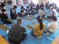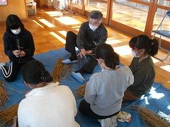 また,わら細工体験もしました。なわをなう作業はとても難しかったようですが,