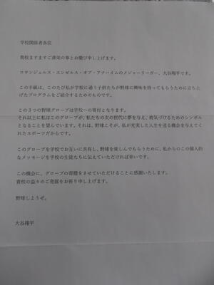 本日、アメリカのメジャーリーグで活躍されている大谷翔平選手より、グローブが届きました。