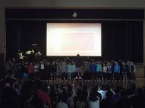 祝う会の最後には,全校合唱で体育館が一つになりました。
