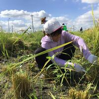 9月11日(水)いきいきクラブさんに刈り方や束ね方を教わりながら稲刈り体験をすることができました。