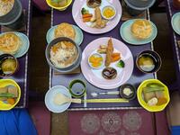 予定より少し早くホテルに到着し、温泉で疲れを癒した後は、夕飯です。