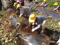 今日は、1年生と2年生による、サツマイモ掘りが行われました。良い天気で、みんながニコニコ笑顔で畑へ出かけて行きました。かぼちゃのような大きなお芋や、ニンジンのような細長いお芋、いろいろな形のお芋がありました。収穫したお芋は、ベランダにならべて大きさを均等に分けて、それぞれ持ち帰りました。今日はどんな美味しい料理を食べているのかな。秋を感じることができて、良かったですね!!