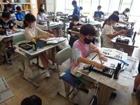 お手本を見ながら、集中して真剣に取り組んでいます。3年生の頃に比べて、筆の使い方が上手になり、はねやはらいを意識して書けるようになってきましたね。