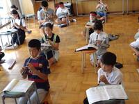 6年生は、音楽でリコーダーを練習していました。距離を取って、人のいない方向を向いて演奏します。
