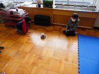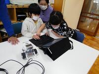 子どもたちが、相談し合いながらプログラミングして、「レゴマインドストームEV3というロボットを動かす学習です。