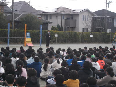 野田警察署生活安全課の方にも来校していただき、避難の様子についてご指導をいただきました。子ども達の真剣に訓練に取り組んでいる様子にお褒めの言葉をいただきました。