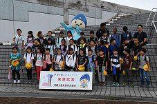ふれあいランドのキャラクター「ミズマルくん」です。本校の到着と同時に出てきてくれました。