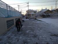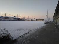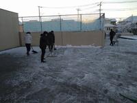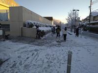 昨日の雪が校庭に積もっており、児童の安全確保のため朝から職員が雪かきをしました。