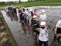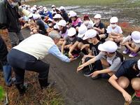 田んぼに足を踏み入れた瞬間は、「きゃー」「冷たい~」「転んじゃうー。」「助けて~!」?