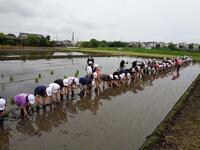 最初は、慣れない手つきで稲に触っていましたが、だんだんと上手になり田んぼの中での動き方もスムーズになっていきました。