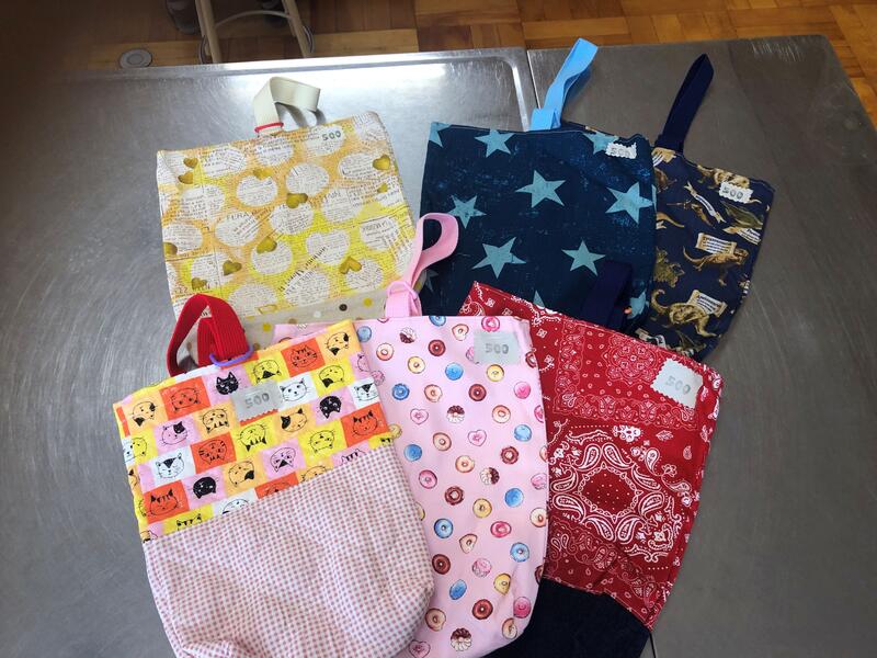 給食セットや道具袋、体操服袋、上履き袋、防災ズキンカバー、豊富な学用品を販売予定です!