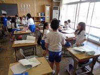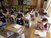 3年生は、谷川俊太郎さんの「かえるのぴょん」の詩をグループで音読していました。
