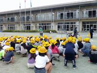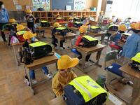 緊急地震速報から、一時避難を行いました。上手に机の下に避難することができました。
