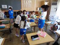 委員会活動が始まっています。日の当たるところにプランターを移動してあげて水をあげる子、給食の片付けをがんばる子、みんながんばっていました。