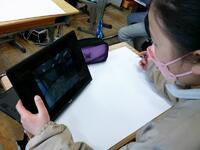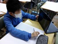 6年生は、図工の絵を描くのに、クロームブックでお気に入りの場所を選んでいます。
