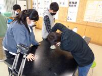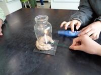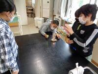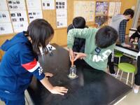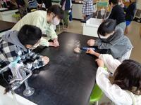 物を燃やし続けるにはどうしたらよいか、グループで実験していました。