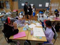 新しい学級で、新しい先生や友だちの学習の仕方に慣れようとしています。