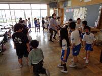 2年生の音楽では、輪になったり、歩いたり、ダンスをしていました。
