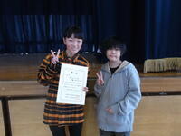 最後に校長先生、教頭先生からメダルをかけてもらいました。