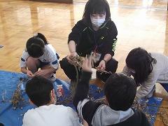 また,わら細工体験もしました。なわをなう作業はとても難しかったようですが,