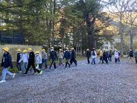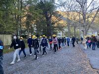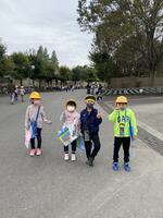 ◯◯くんが遅れているから、もう少しゆっくり歩こう!
