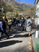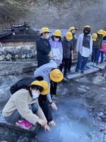 湯滝の迫力に圧倒され、6年生はしばらく滝を眺めていました。