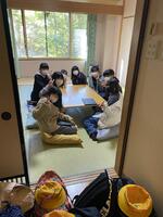 日光彫の体験を終え、今は就寝の準備をしています。布団を敷いて、歯磨きをして、水筒を洗って準備万端!