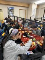 かがやき学級では道徳で『いのちをいただく』を行っていました。私たち人間は植物や動物たちの命をいただいてそこから食事をしていることに気付き、「ありがたくいただく」「のこさずにたべたい」と発表していました。
