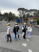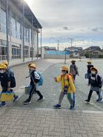 今日から後期が始まりました。1年生は引き渡し避難訓練です。感染症対策のため1年生だけ行いました。いつもの避難訓練とはちがって「今日は何が始まるのかな?」と初めての引き渡し訓練で戸惑っている1年生もいました。雨が心配されましたが、調度雨がやんでいて時間通り引き渡すことができました。
