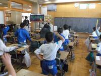 5年生は、理科の学習で生き物の学習の振り返りを行っていました。算数で学習した内容を活用して問題に答えていました。