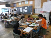 4年生では、総合的な学習の時間に誰もが住みやすいまちづくりについての学習をしています。以前行った車いすや目隠し体験などで感じたことをもとに、必要な支援についてパソコンを使ってまとめていきました。どの班も体験を生かした考えがまとめられていました。