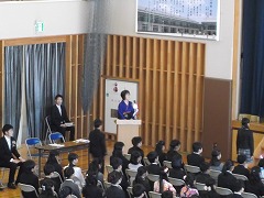 元気よく校歌を歌った後,春休みの生活で気をつけたいことを担当の先生が話しました。
