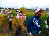 学校では、台風に備えて5年生が稲を体育館に避難させていました。
