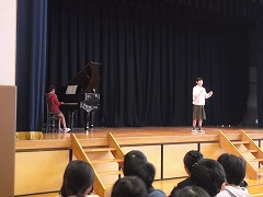 代表児童が花束を渡し,全校一緒に「君とぼくのラララ」を歌いました。