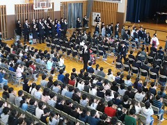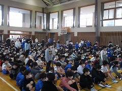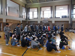 元気よく校歌を歌った後,春休みの生活で気をつけたいことを担当の先生が話しました。