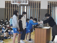 教室に戻ってから,各教室で担任から一人ひとりに「あゆみ(通知表)」を手渡しました。