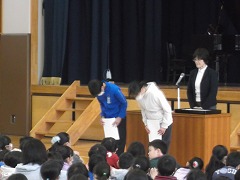 修了式後に,教頭先生より今年度末で転退職する職員の紹介がありました。